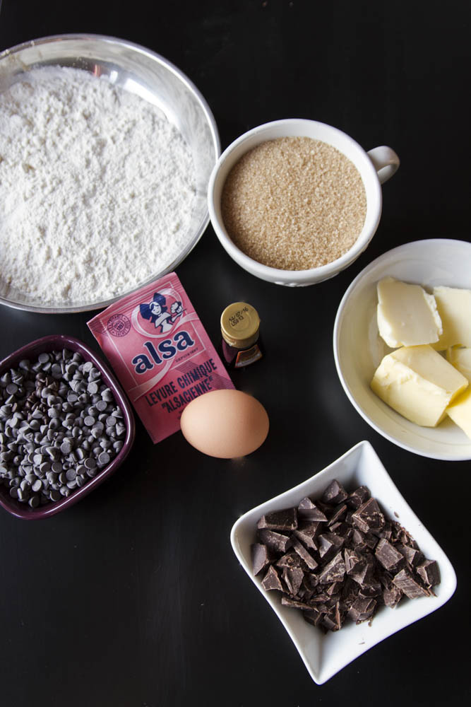 On coupe le chocolat en grosses pépites au couteau. J’ai également ajouté des pépites normales.