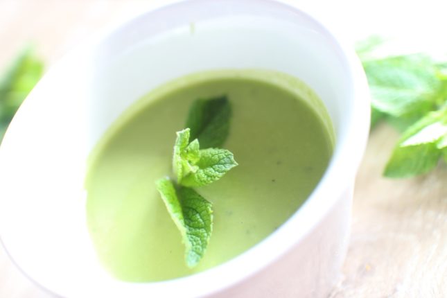 C’est frais, parfait pour l’été et ça nous change de l’éternel gaspacho à la tomate ! Le velouté petits-pois/menthe se déguste aussi bien chaud que froid. Mais c’est la dernière option que j’ai choisie ici. Normal : le soleil était enfin de retour !