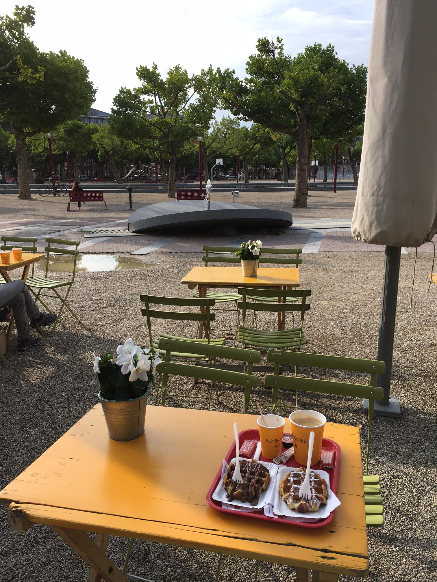 Le lendemain matin, nous avons petit-déjeuner au soleil, au Rembrandt kiosk dans le quartier des musées, avant de parcourir le musée Van Gogh.